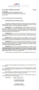 O Sindsempba protocolou, nesta data, o Ofício n° 066/2022, que solicita ao MP a concessão de abono do auxílio alimentação no mês de dezembro, a ser implementado a partir deste ano de 2022. O Sindsempba considera que a concessão do abono seria um ato de reconhecimento e valorização dos servidores e servidoras do MP-BA que sofrem a vários anos sem reajustes salários.