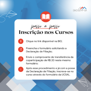 É importante destacar que aqueles que ainda não são filiados ao SINDSEMP-BA podem se associar e, após a filiação, também terão acesso aos cursos oferecidos. Esta iniciativa é um reflexo do comprometimento do SINDSEMP-BA em fomentar o crescimento profissional de seus filiados, proporcionando-lhes oportunidades de qualificação, através de uma instituição de ensino renomada.