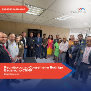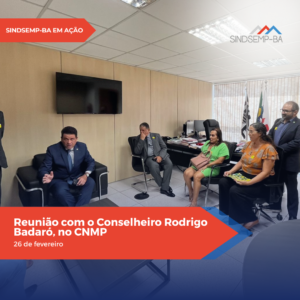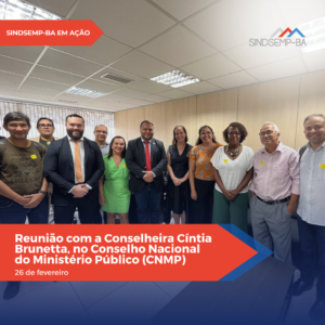 No período de 26 a 28 de fevereiro, a Diretora Jurídica do SINDSEMP-BA, Hilda Freitas, esteve em Brasília (DF), ao lado de representantes da FENAMP, da ANSEMP e de entidades de base estaduais, para uma série de agendas voltadas aos interesses da categoria no Conselho Nacional do Ministério Público (CNMP) e no Congresso Nacional.